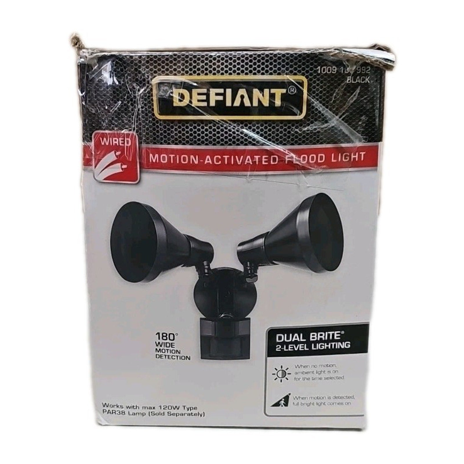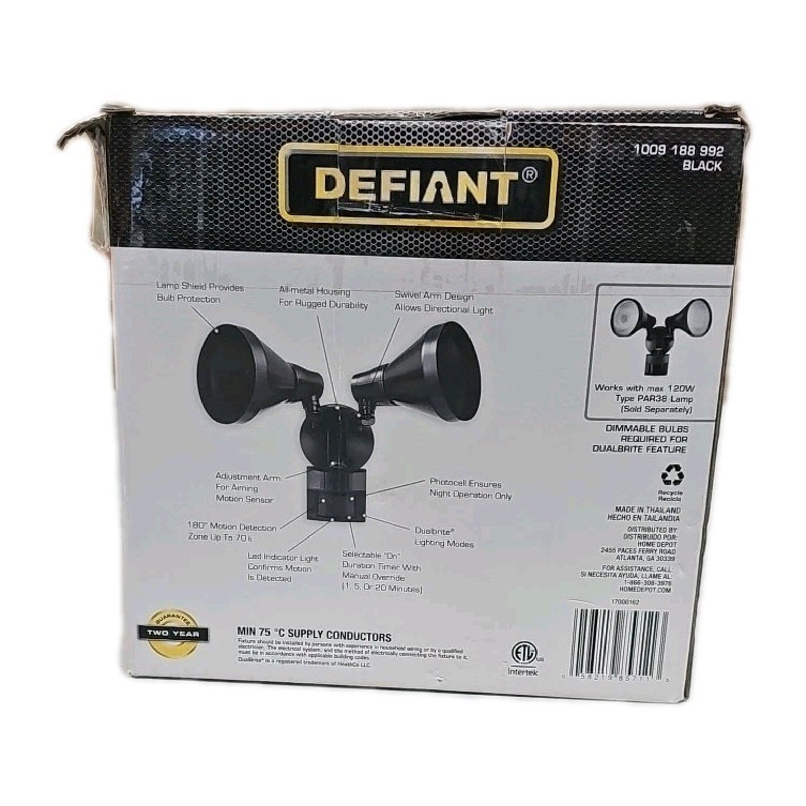 The Defiant Motion Activated Wired Outdoor Flood Light is a reliable and efficient outdoor lighting solution. With a dusk-to-dawn sensor, this flood light will automatically turn on at dusk and off at dawn, providing added security and safety to your outdoor spaces. The motion sensor ensures that the light will only activate when needed, making it a great energy-saving option. With two LED lights and a hardwired power source, this flood light is a durable and effective choice for illuminating your yard, garden, or outdoor living area.