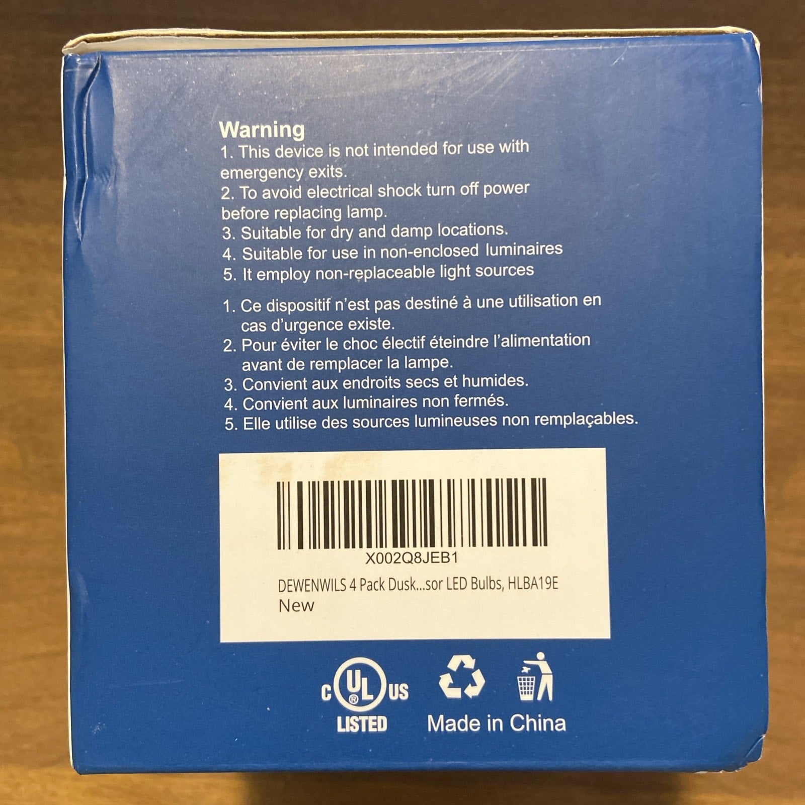 DEWENWILS A19 Light Sensor LED Light Bulbs LED Security Bulbs 4-Pack