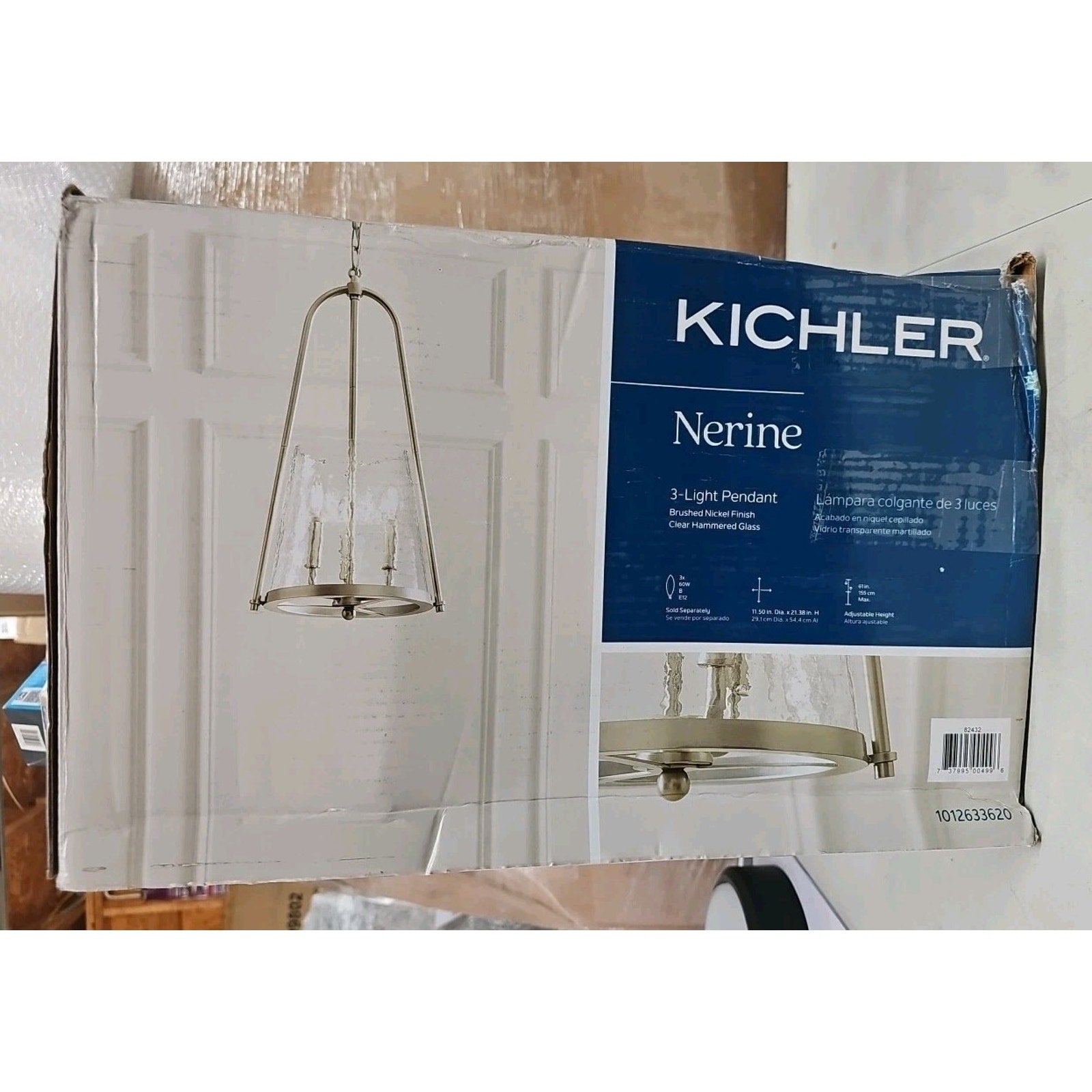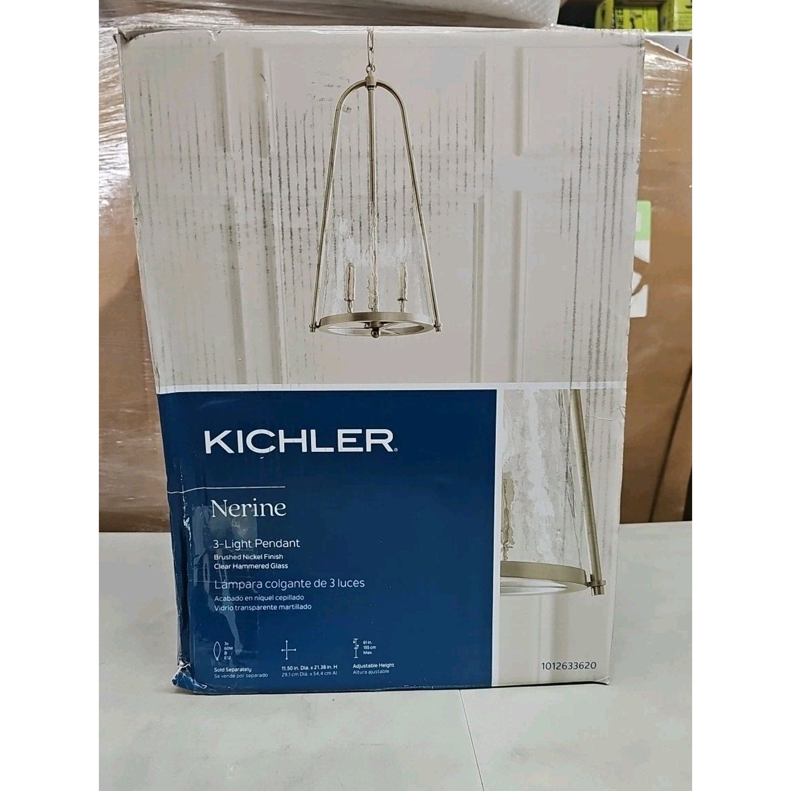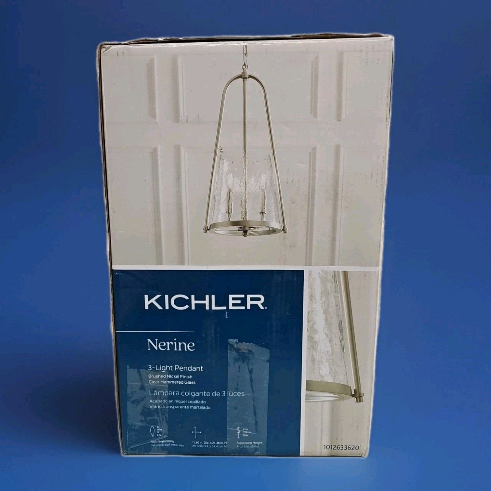 The Kichler Nerine 3-Light Foyer Pendant with Hammered Glass in Brushed Nickel is a stylish and elegant ceiling-mounted pendant light. This light fixture by Kichler features a brushed nickel finish and hammered glass shade, adding a modern touch to any room. With three lights and a corded power source, this pendant light is perfect for illuminating and adding a focal point to your home's foyer or entryway. The sleek and contemporary design of this pendant light makes it a standout piece in any home decor.